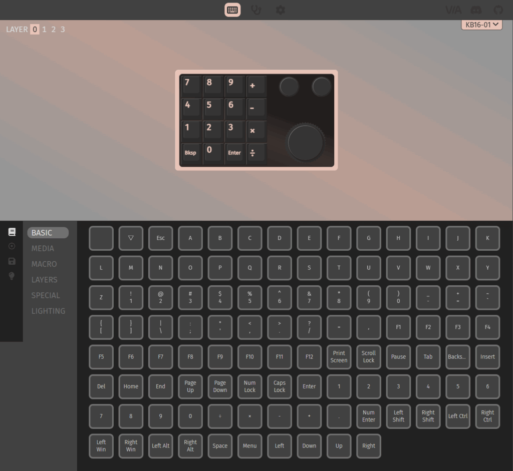 VIA対応 16キー・ロータリースイッチ付き左手デバイス【KB16】