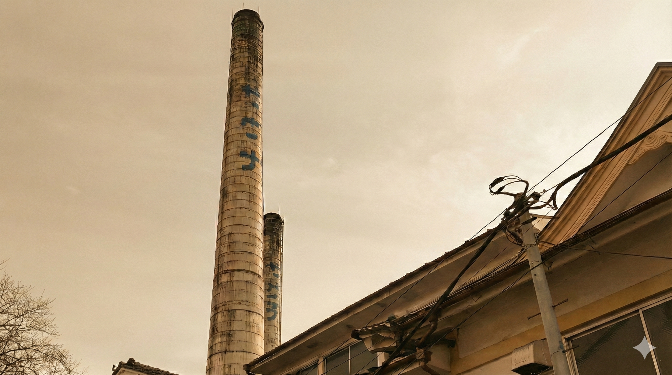 もはや文化遺産級のこの煙突にこの文字。