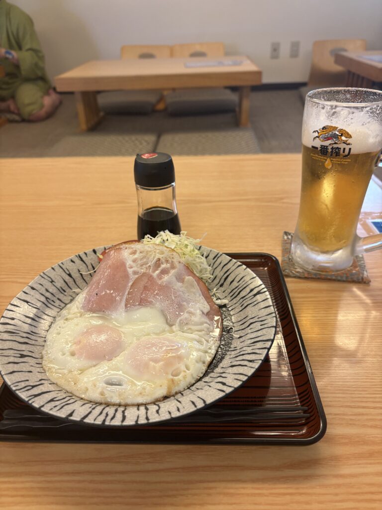 ハムエッグを頂いて風呂上がりのビールで完全に決まりました。